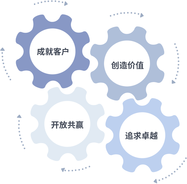 成就客户是一切决策的出发点,创造价值是衡量所有工作的标准,追求卓越是AG庄闲做事做人的态度,开放共赢是AG庄闲的格局也是最终的结果。价值观的齿轮环环相扣,推动着组织里的每个人不断向前。
